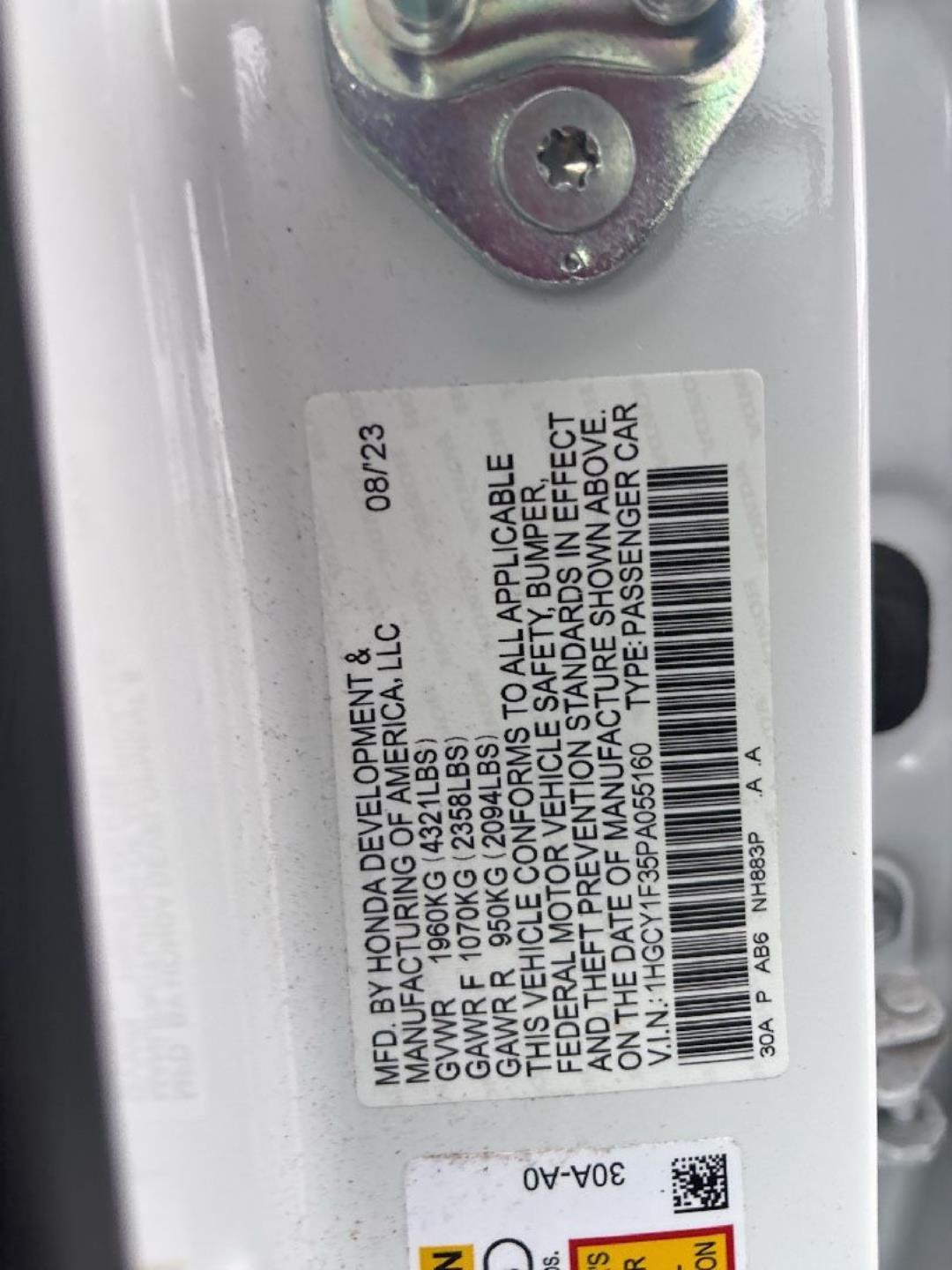 1HGCY1F35PA055160