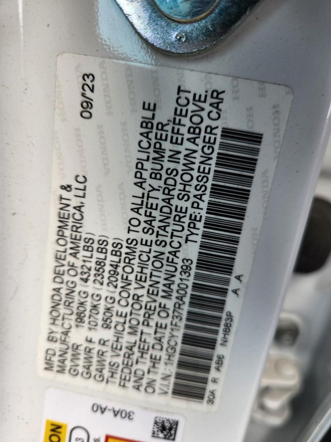 1HGCY1F37RA001393