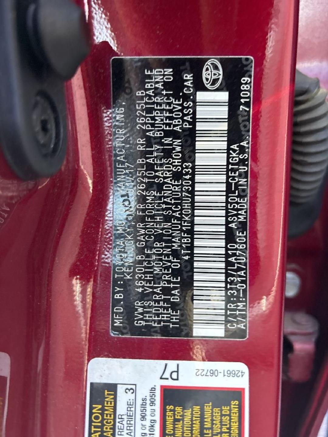 4T1BF1FK0HU730433