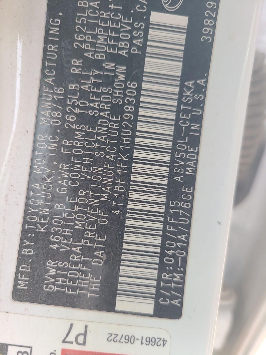 4T1BF1FK1HU298306