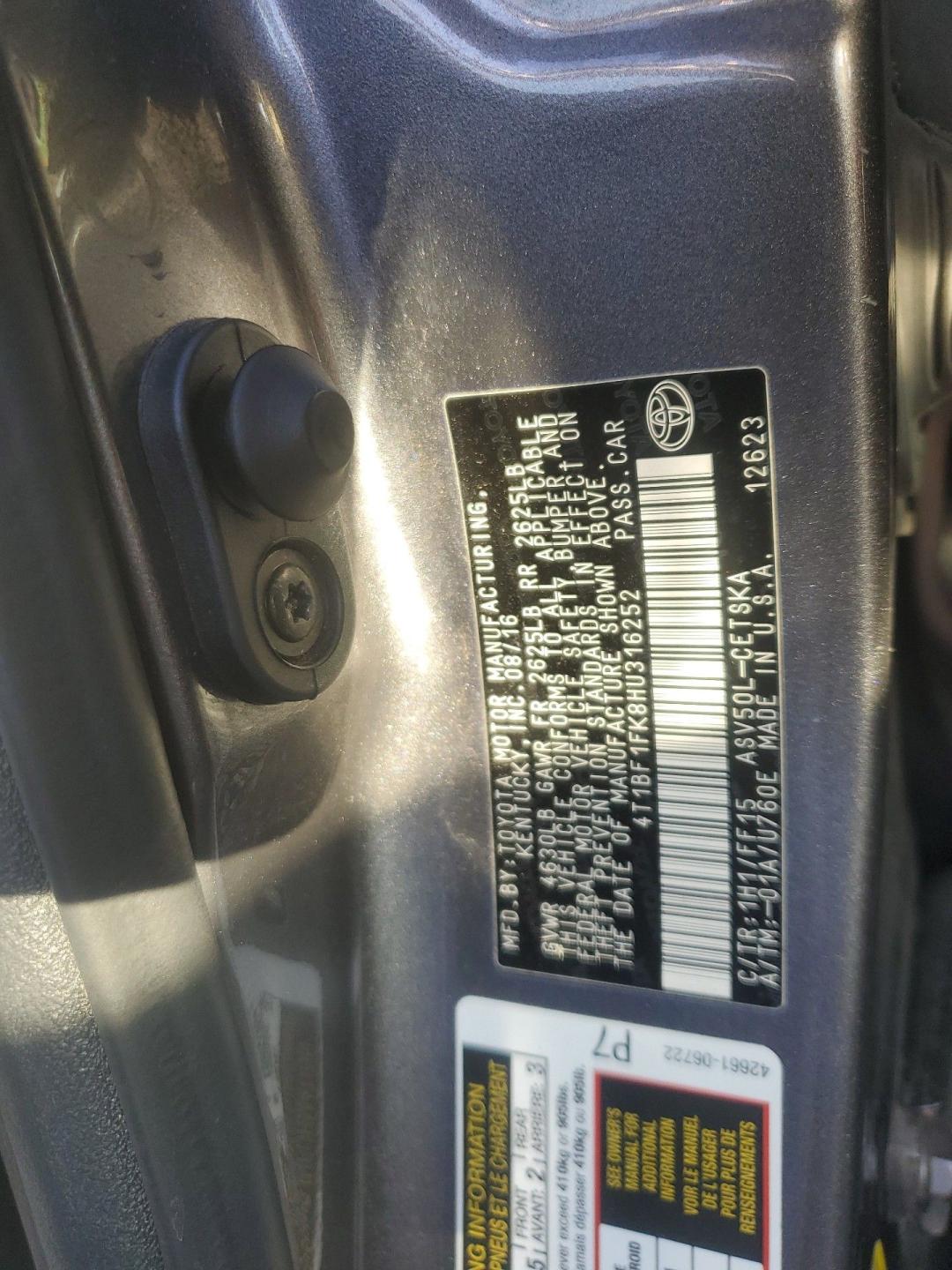 4T1BF1FK8HU316252